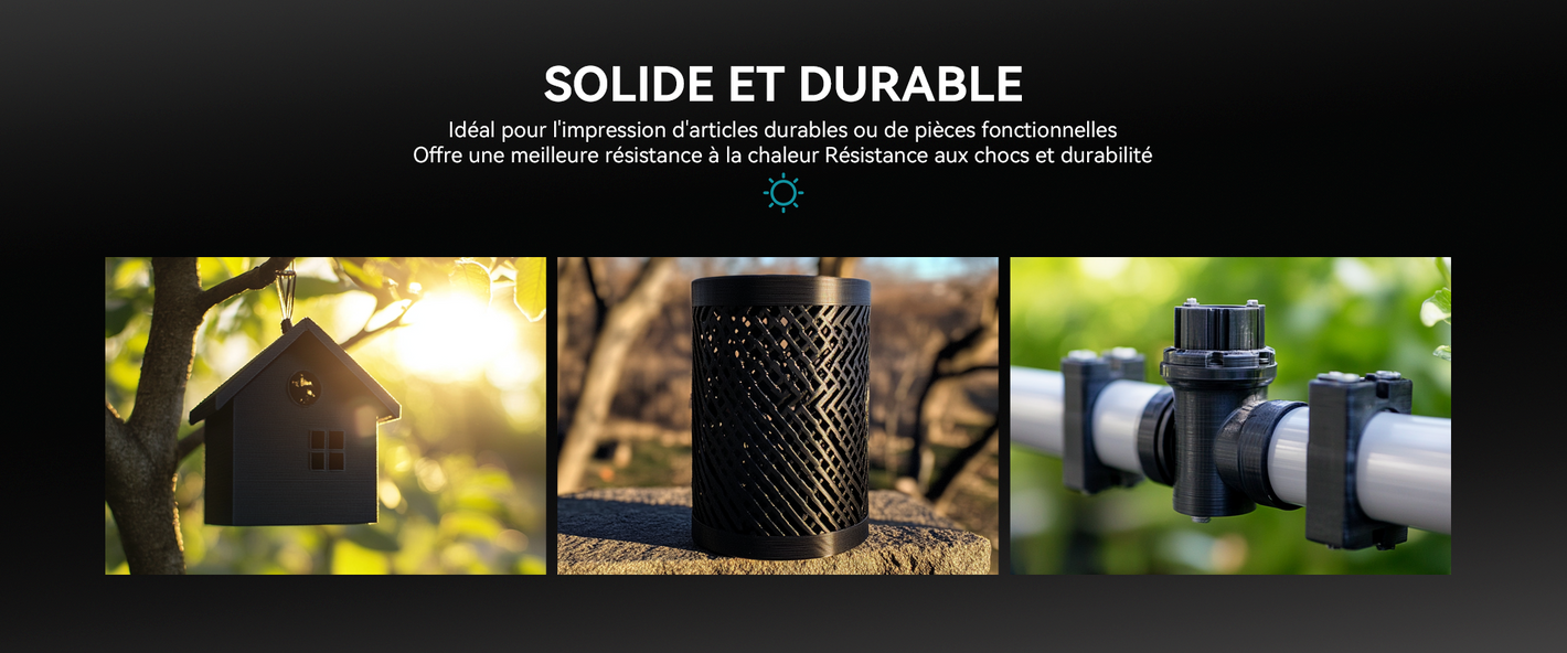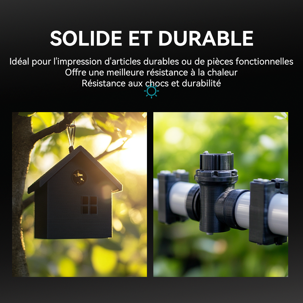 [Résistance aux chocs et durabilité] Le filament ABS peut résister à une utilisation à long terme sans être sujet à l'usure ou aux dommages et n'est pas sujet à la rupture ou à la déformation en cas d'impact ou d'écrasement.