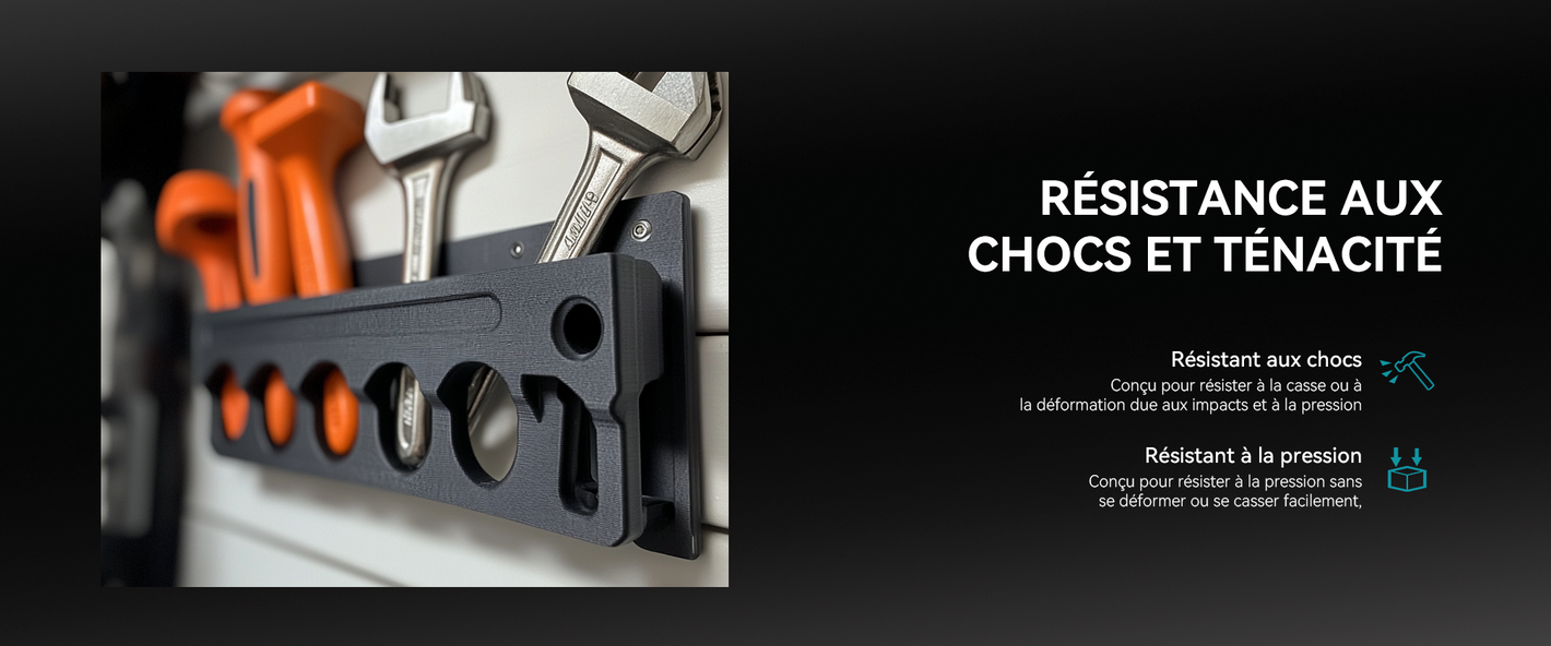 [Résistance aux chocs et ténacité] Le filament ABS peut supporter une certaine pression sans être facilement déformé ou cassé et peut résister aux dommages de surface tels que le frottement et les rayures, ce qui permet au produit de conserver son apparence intacte même après une utilisation prolongée.