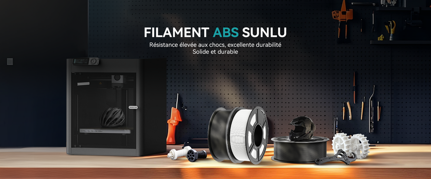 Le filament 3D ABS de SUNLU est un type de filament solide et durable, idéal pour l'impression d'articles durables ou de pièces fonctionnelles qui nécessitent une plus grande résistance à la chaleur.